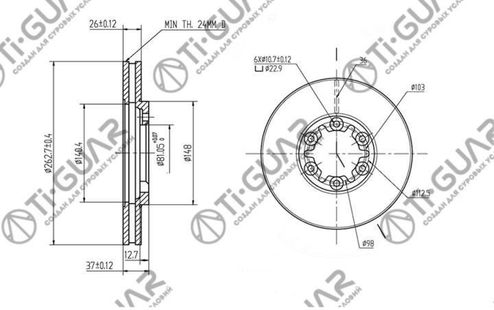 Диск тормозной /передний /TI-GUAR для Nissan ATLAS, CONDOR F23 1991-; 263/26мм; TG-40206-21T01 RN1893V 4020621T00 4020621T01