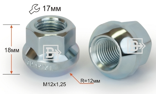 Гайка колёсная 300044 B CR (M12X1.25, КОНУС=20 С ВЫСТУПОМ)* MATRIX